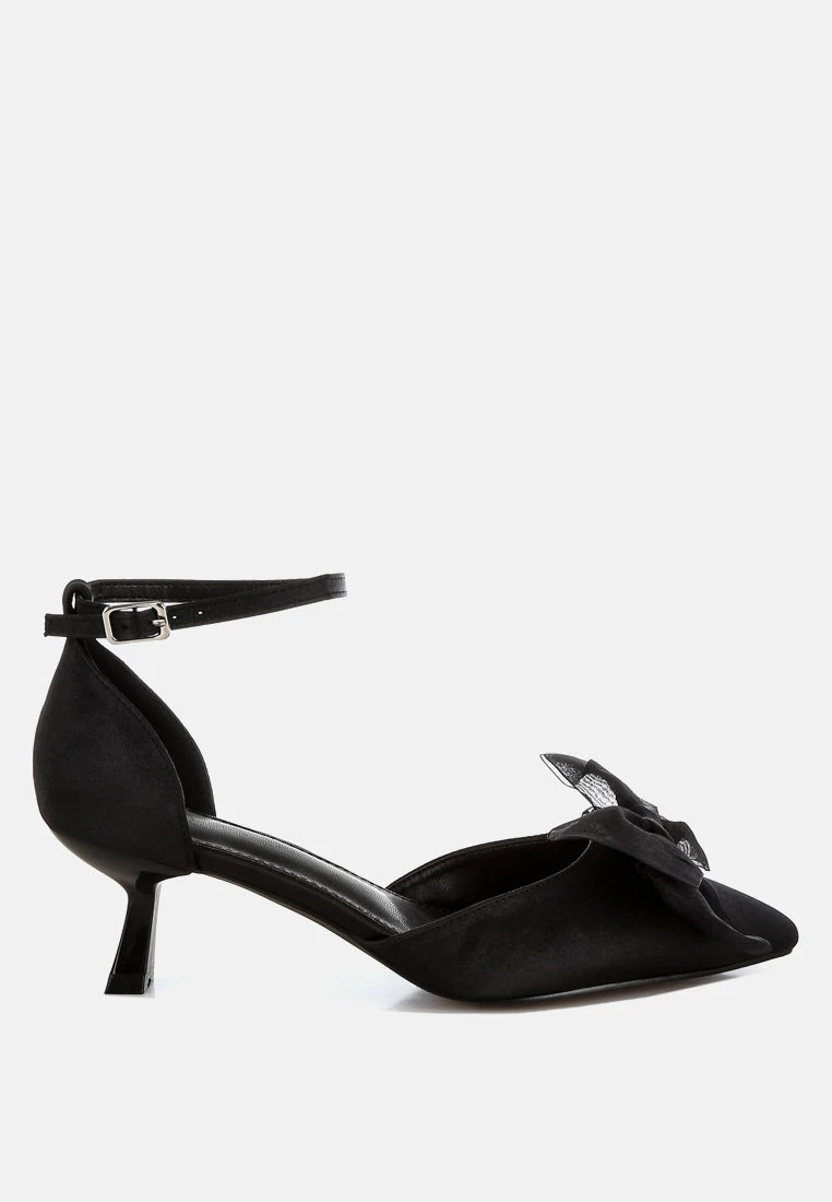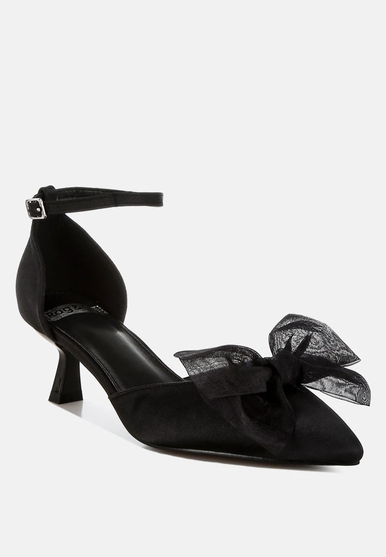 A pair of elegance on your feet, the kitten heels have a sophisticated and chic design that exhibits subtly alluring beauty. The bow detail is a trendy touch that adds flair while the comfortable cushion insoles cut strain and offer a relaxed experience.Â