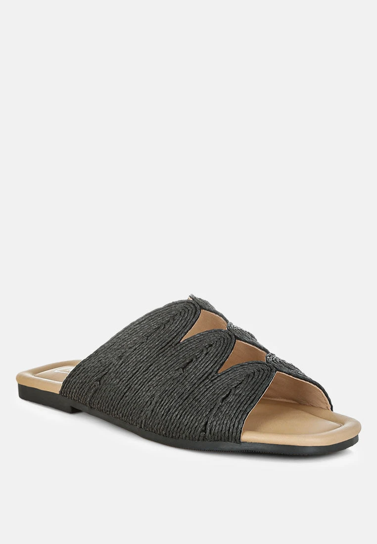 Step out in style with these raffia flats featuring intriguing cut work details. The slip-on construction makes them easy to wear while the cushioned insoles add to the comfort. Team this pair with your casual or formal ensembles to make a statement.