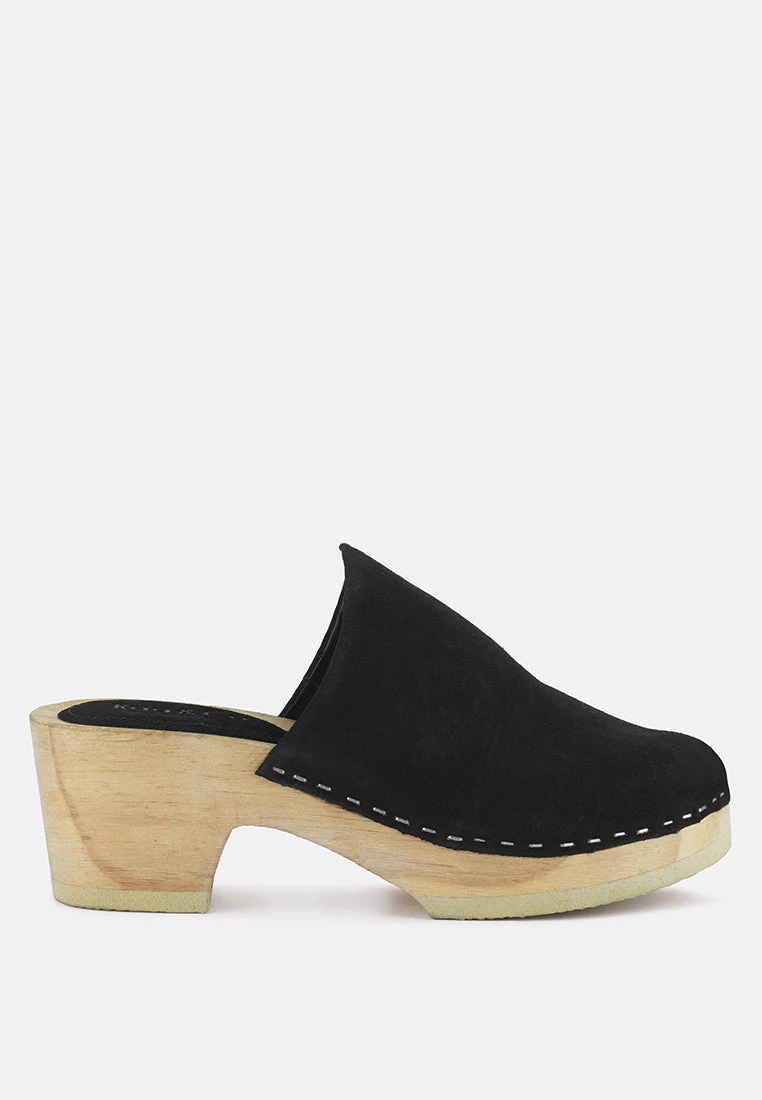 Made with Soft Genuine Suede and handcrafted wooden block heels, this clog fits the curve of feet well and is a comfortable day-long wear.