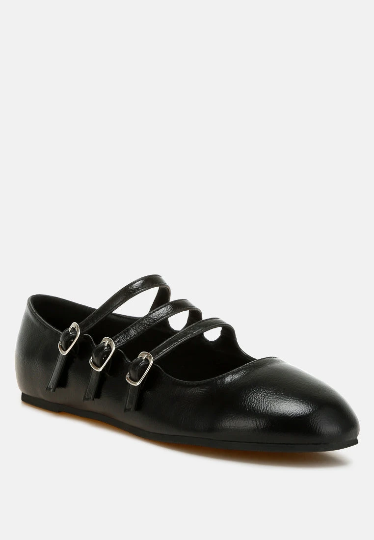 The triple strap Mary Jane ballerinas have a dramatic vintage flair that looks beautiful paired with anything from basics to a maximalist eclectic fit. The ballet flats have an underlying elegance and are quite comfortable with the extra cushion insoles that cut strain and offer a relaxed fit.Â