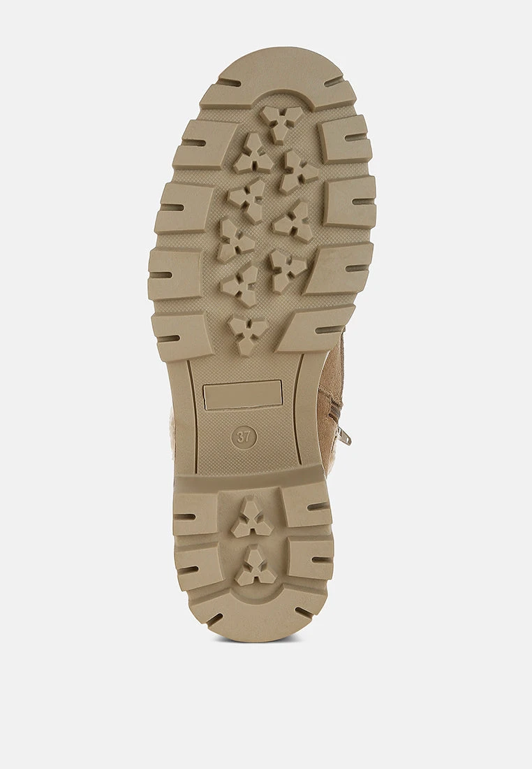 The high ankle shaft and classic lace-up style with anti-skid lug sole make these chunky ankle boots an alpha with all the right features offered in one. The comfortable 2-inch heel, sleek zipper closure, and faux fur collar detail make this an iconic pair designed for anywhere and everywhere!