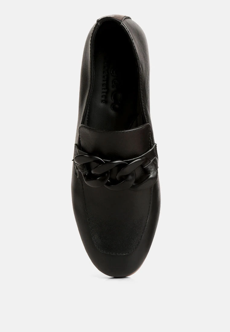 MERVA Chunky Chain Leather Loafers In Black